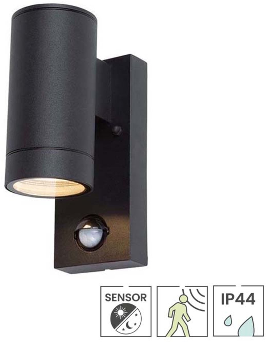 Buitenlamp met bewegingssensor – Wandlamp buiten – Havana – Zwart – IP44 – Geschikt voor GU10 spot – Ø 65 mm