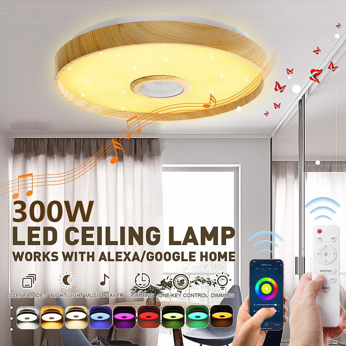 300W WIFI Moderne LED Plafondlamp Smart bluetooth Muziek Speaker APP Afstandsbediening Licht RGB Dimbare Plafondlamp
