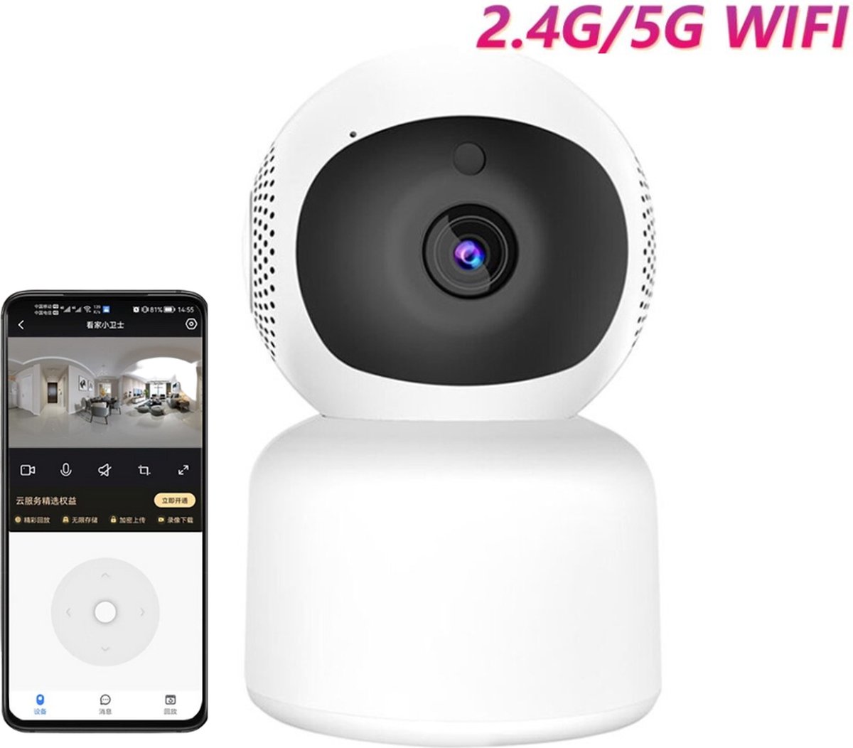 Specificaties: Babyfoon met camera – 1080P Smart Camera – HD Night Vision – Wifi 5G – Bewegingsdetectie – Spraakfunctie – Met App – Camera Beveiliging – Huisdiercamera