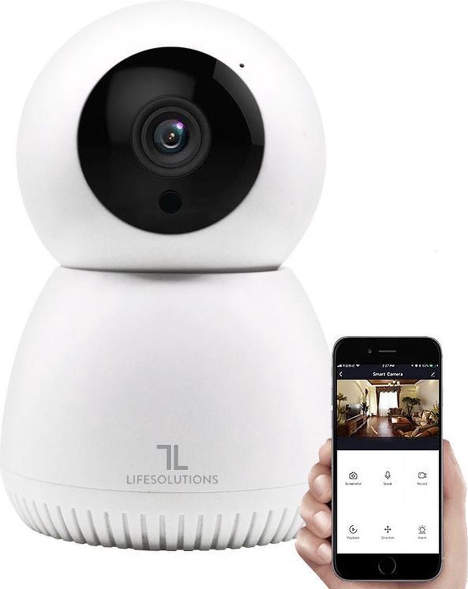 Specificaties: LifeSolutions – Babyfoon met camera – Baby Camera – Beveiliging – App – WiFi – Cloud – 1080P – Wit