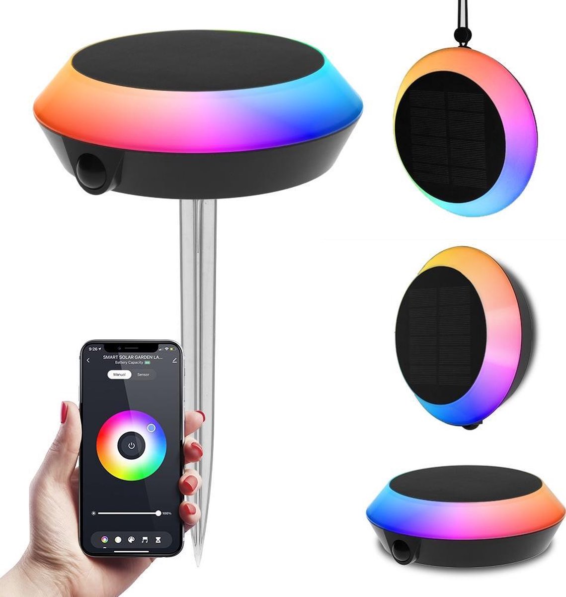 9x LED Smart Solarlamp Pardoo RGBWW Bluetooth IP65 – Oplaadbaar – prikspot, wandlamp en hanglamp voor: Google Home, Amazon Alexa, Siri en Homeylux app