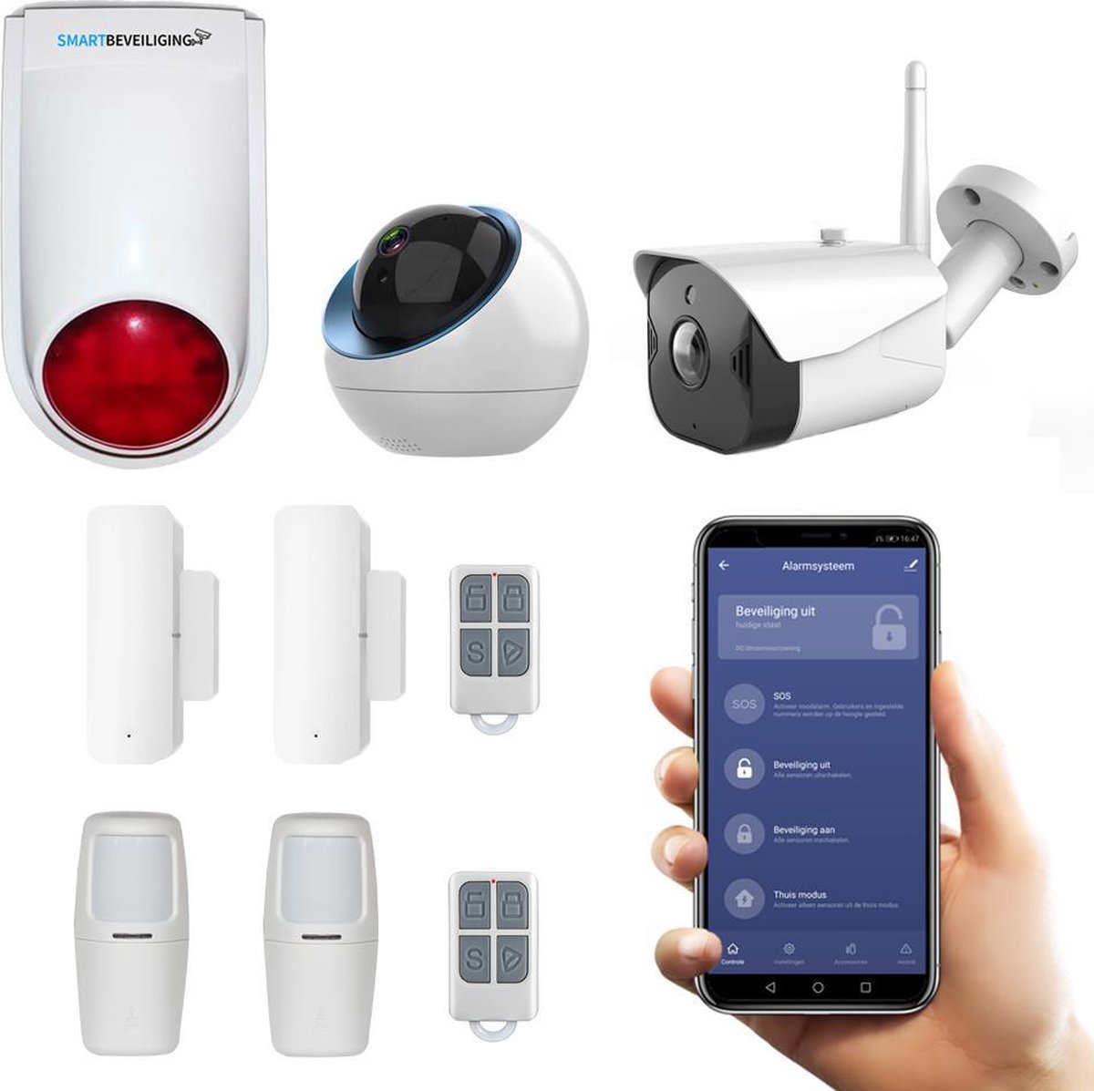Met het alarmsysteem pro is uw huis slim beveiligd met moderne beveiligingstechnieken. Het alarmsysteem omvat een alles in één kit: alarmpaneel met een ingebouwde sirene en roodlicht, twee bewegingssensoren, twee raam-/deursensoren, binnencamera en een meegeleverde afstandsbediening. Zo weet u wanneer verdachte activiteiten plaatsvinden in uw huis. Bij een detectie kunt u de binnencamera draaien naar het gewenste gebied om beelden op te nemen. Het alarmsysteem beschikt over een timer en kan volledig naar wens ingesteld worden. Het alarmsysteem is bovendien compatibel met alle producten van Smart Beveiliging, Google Assistant en Amazon Alexa.