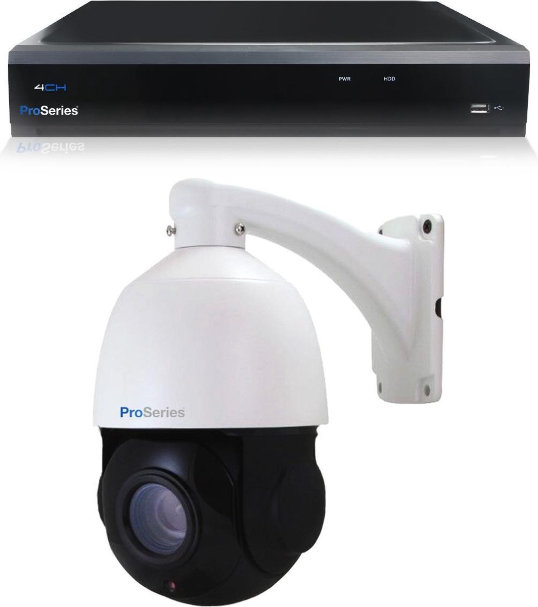 Het bekabeld camerabewaking systeem van ProSeries met 1 x bestuurbare PTZ bewakingscamera () is o.a. geschikt voor: grote bedrijfspanden, loodsen, appartementencomplexen, toezichthouders of de scheepvaartindustrie. Door de 18 x auto zoom / focus lens kunt u tot aan de kleinste details inzoomen. De Sony image sensor met een resolutie van 5MP 3K HD geeft een fenomenaal beeldresultaat. De krachtige IR leds maakt het mogelijk om een nachtzicht tot 80 meter te kunnen waarnemen. Met de bijhorende software kunt u overal ter wereld live monitoren vanaf uw smartphone, tablet of computer. Het systeem ondersteund apparaten zoals: Windows, MacOS, iOS (iPhone iPad) en Android. Het is mogelijk om de PTZ bewakingscamera te bedienen vanaf u Smartphone, computer of via het systeem zelf. Draadloos is nog nooit zo eenvoudig geweest met onze ProSeries powerline adapters (https://securetech.nl/product-categorie/accessoires/powerline-adapters/). Verbinding via het stroomnet en de voordelen van een bekabeld systeem. Één adapter bij de opnamerecorder en één adapter in een dichtstbijzijnde stopcontact bij iedere camera, in feite is het een bekabelde verbinding maar draadloos omdat u geen kabels hoeft te trekken van de opnamerecorder naar de camera. Deze oplossing is betrouwbaarder en stabieler ten opzichte van een WiFi systeem.