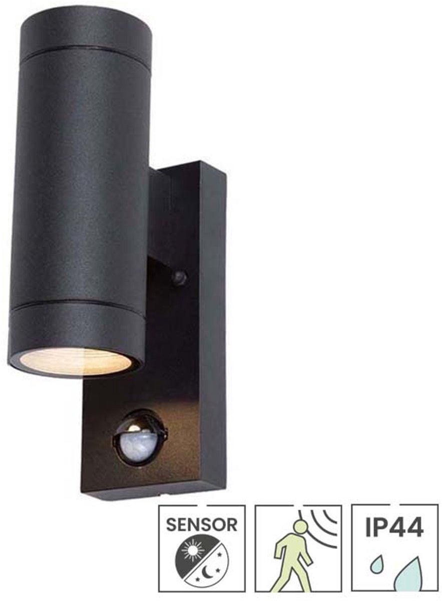 IP44 buitenarmatuur up- en downlight met bewegingsmelder in een tijdloos design met GU10 fittingen Het tijdloze en klassieke design van dit buitenarmatuur Samos is een perfecte toevoeging aan een modern huis. Het licht straalt naar boven en beneden en biedt zo een perfect lichtaccent voor je wanden.