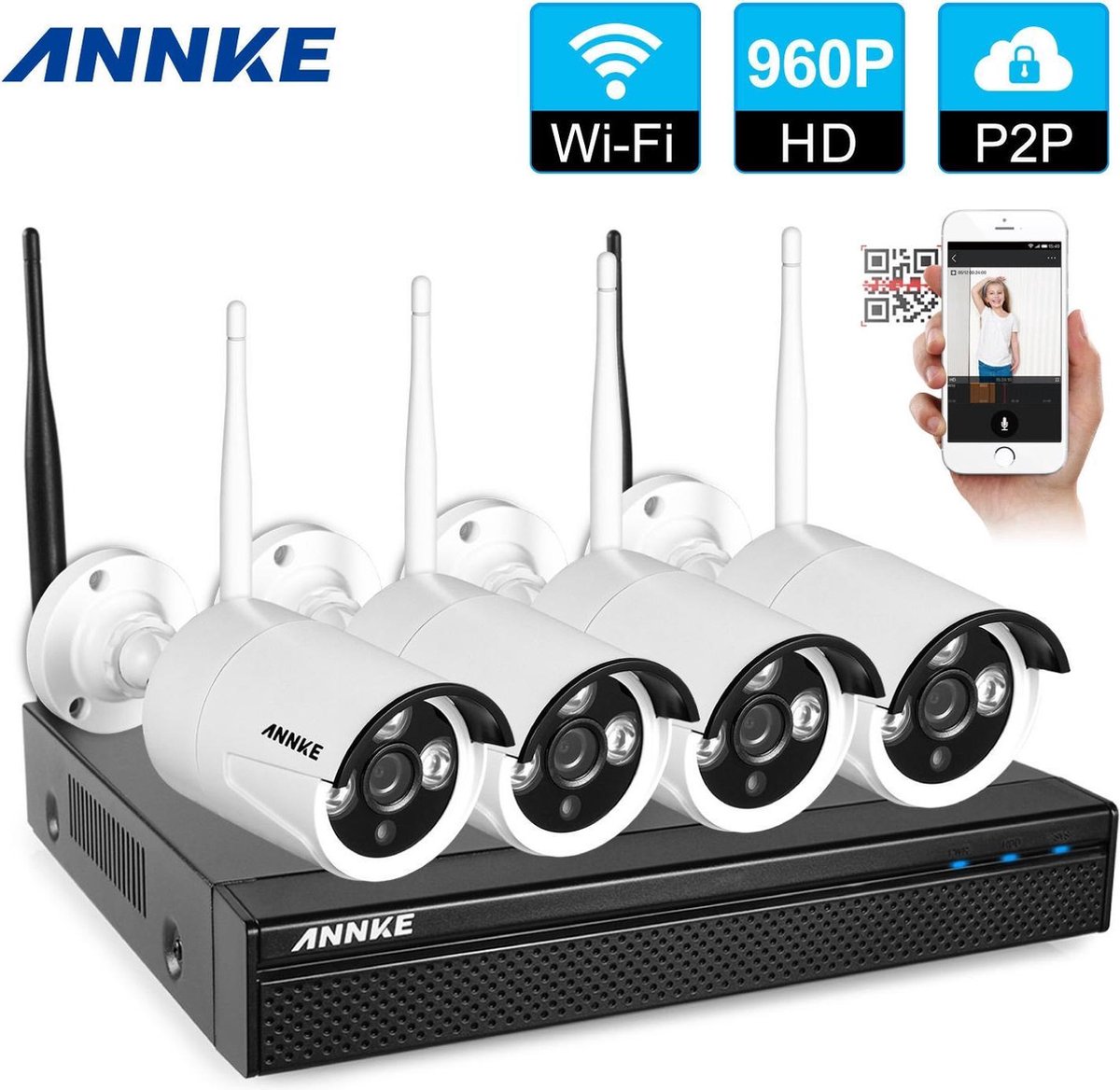 De An1080N van Annke is een complete professionele camerabeveiliging set met de focus op gebruiksgemak. Deze set bestaat uit 4 hoge kwaliteit draadloze camera’s en een DVR recorder die je eenvoudig aansluit op elk televisie- of computerscherm.