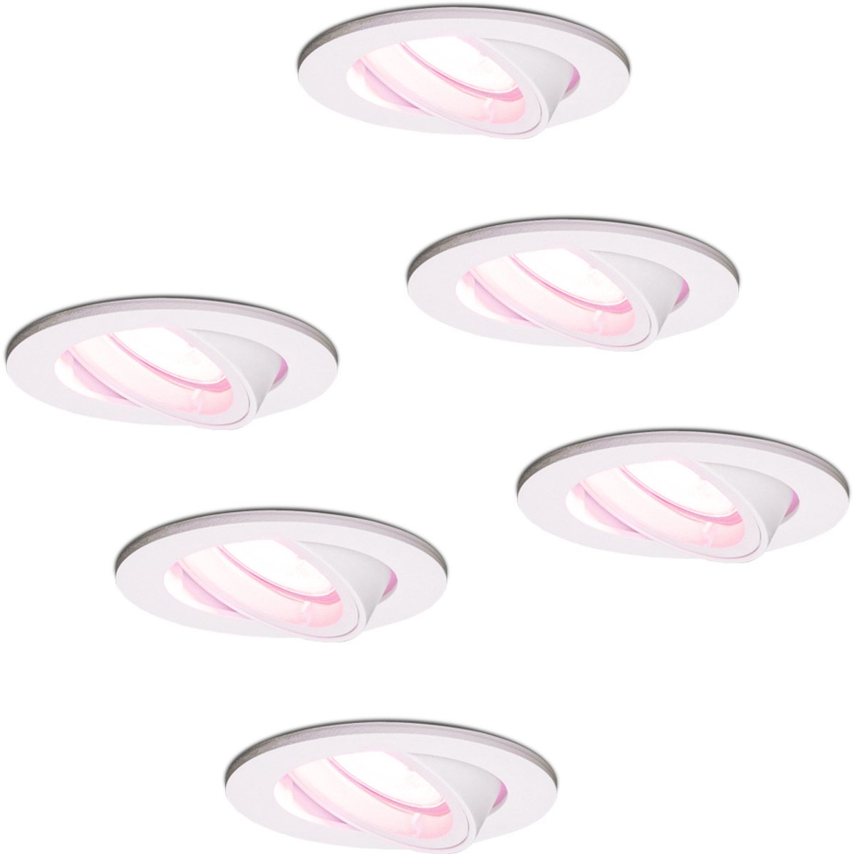 Homeylux® Smart WiFi LED inbouwspot 6 stuks 5,5W Wit Dublin dimbaar RGBWW- Kantelbaar – IP20 – 400lm – Bedienbaar via Homeylux® App – Google Home en Amazon Alexa