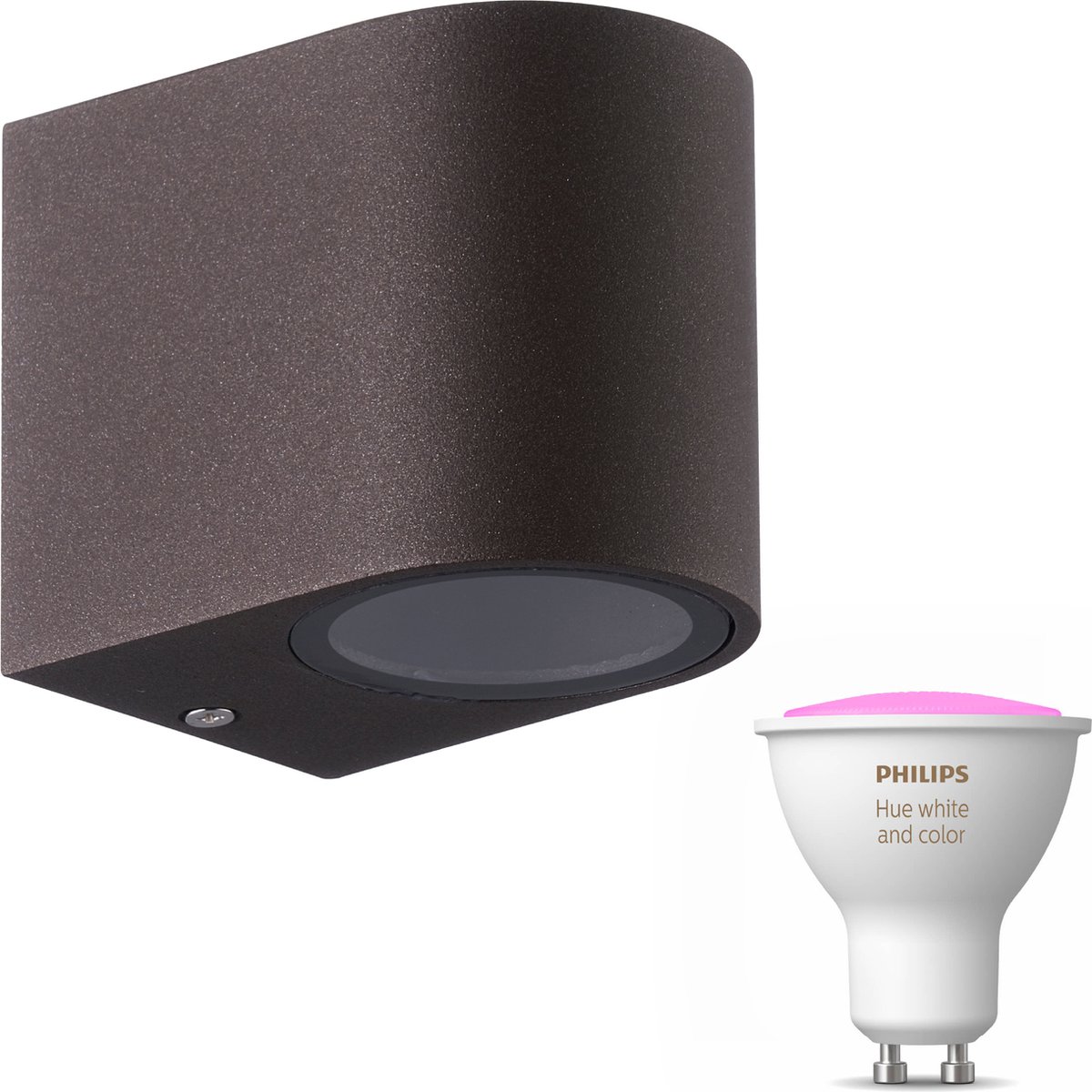 Mantra Kandachu Wandlamp Buiten Rond – Muurlamp – 1 Lichtpunt – Tuinverlichting LED Buiten – Buitenlamp – Incl. Philips Hue White & Color Ambiance GU10 – Roestbruin