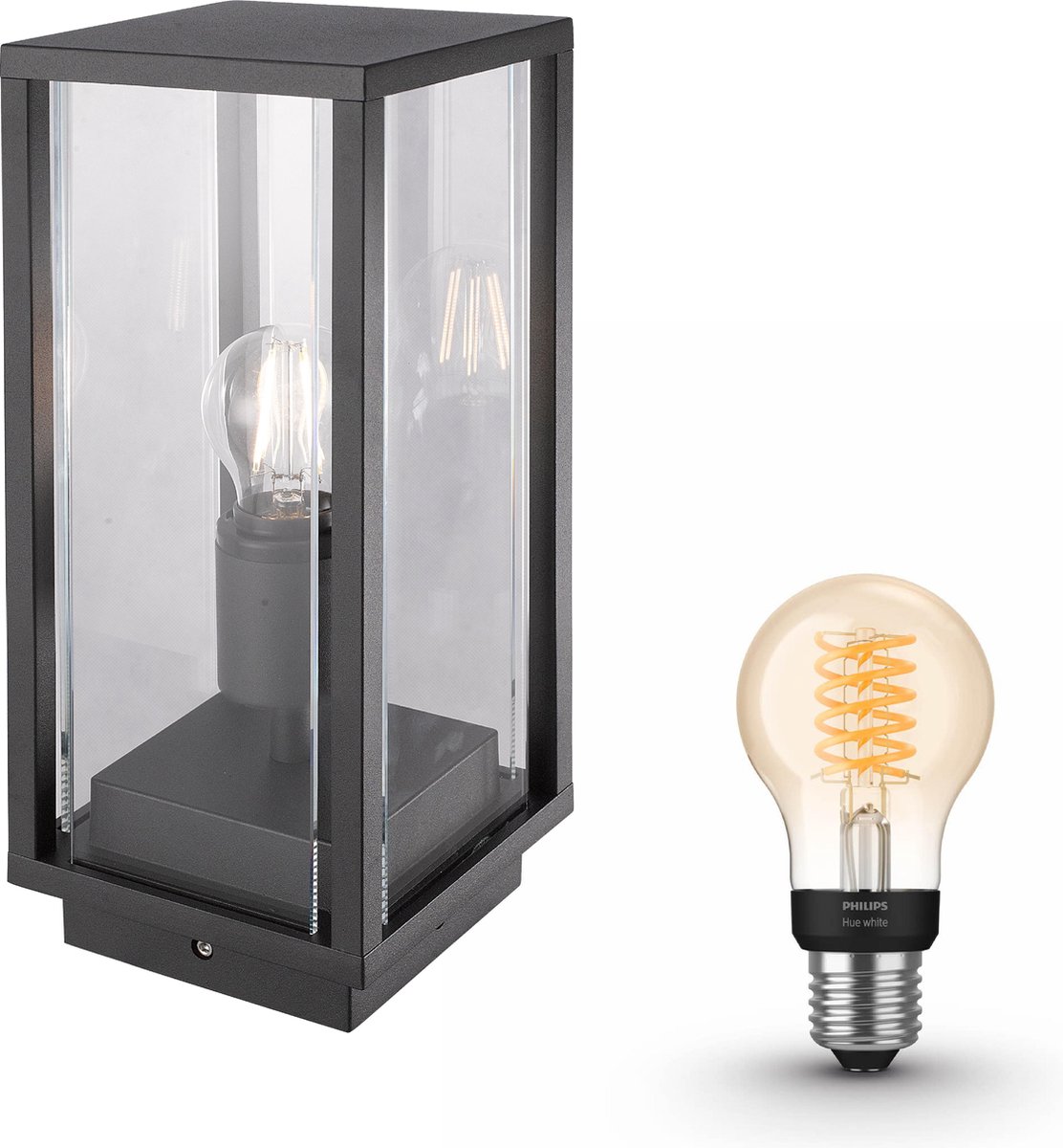 Creëer een gezellige sfeer in je tuin of op je terras met de Meribel tafellamp. De tafellamp heeft IP54, waardoor het geschikt is voor verschillende weersomstandigheden. Slimme verlichting Wordt geleverd inclusief Philips Hue Filament standaard E27 lamp. (warm wit licht)