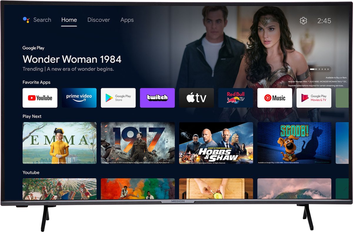 Met jouw Android TV haal je het maximale entertainment uit jouw TV. Je hebt rechtstreeks toegang tot meer dan 400.000 films en series die je kunt bekijken via bekende streamingplatforms zoals Netflix en Amazon Prime Video. Om jouw favorieten sneller terug te vinden, kun je gemakkelijk jouw eigen startscherm maken. Je kunt ook gemakkelijk al jouw favoriete apps downloaden via Google Play.
