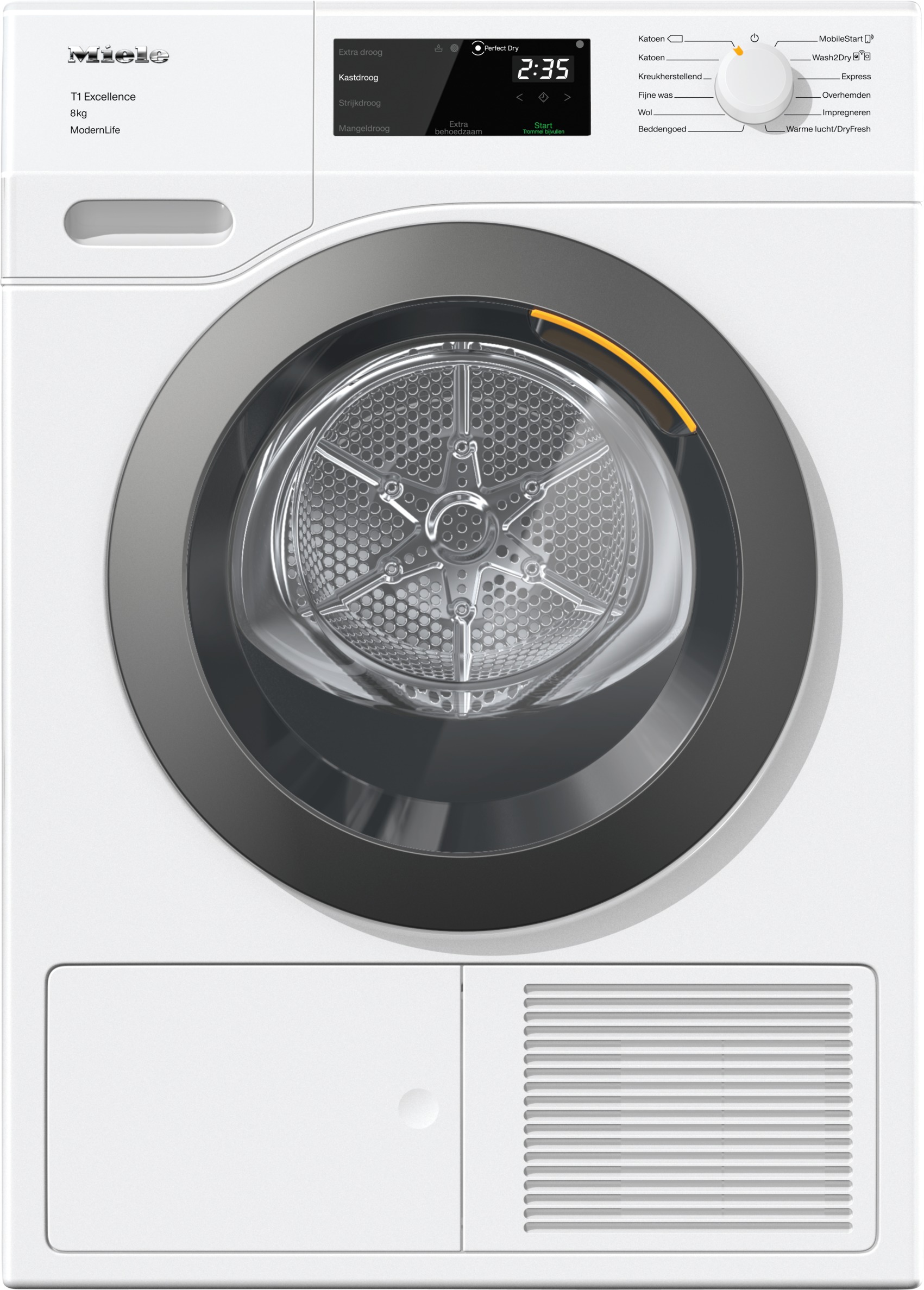 Deze wasdroger van Miele heeft een ruime ladingscapaciteit van 8 kg. Via de Miele@home app is er de mogelijkheid om het droogprogramma te besturen en kunt u de resterende tijd in de gaten houden. Zo ben je gelijk op de hoogte van de status van de droger. Je ziet dan ook wanneer het programma klaar is en je de was uit de machine kan halen. De machine is voor te programmeren tot 24 uur van tevoren. De droger heeft energielabel A++ gekregen en is daarmee ook energiezuinig.