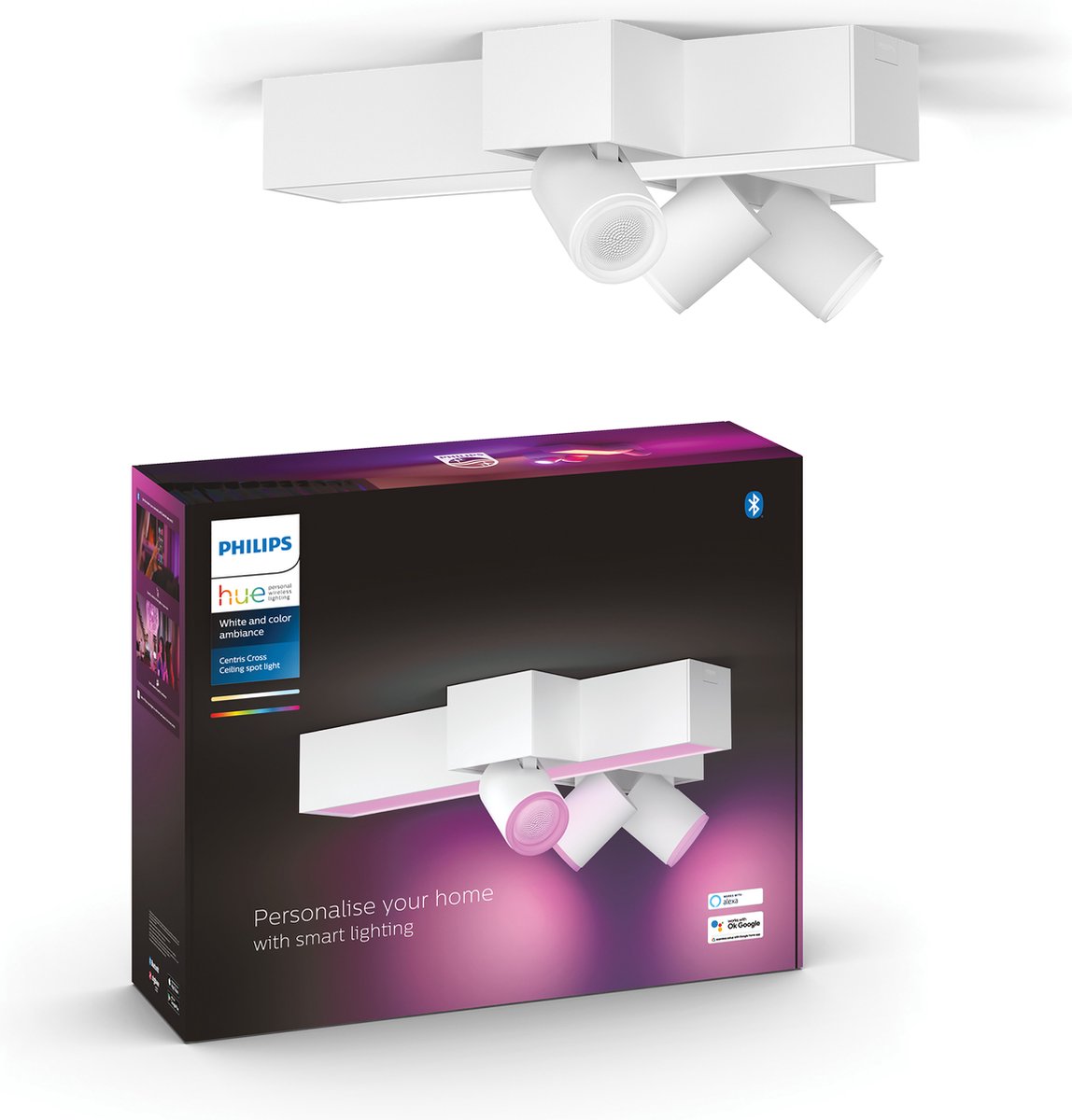 Specificaties: Philips Hue Centris opbouwspot – wit en gekleurd licht – 3-lichts – wit – kruisvorm