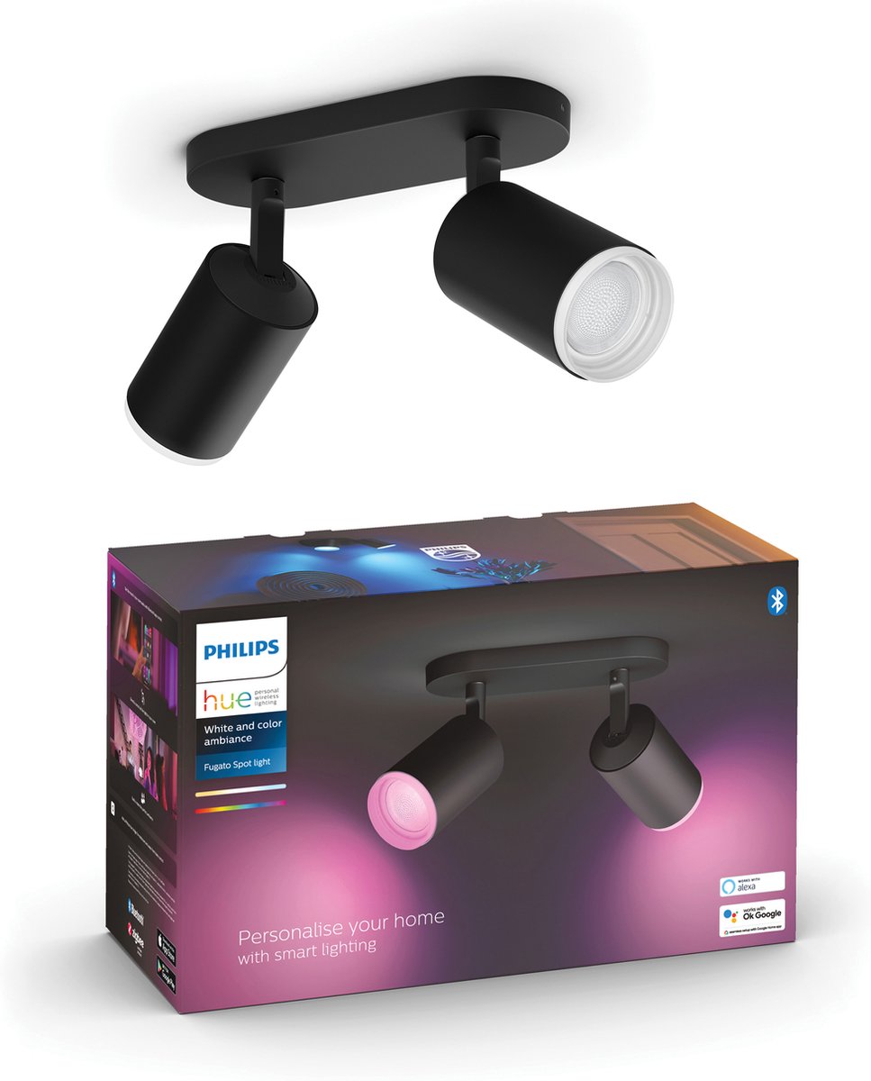 Specificaties: Philips Hue – Fugato – White and Color Ambiance – opbouwspot – 2 lichtpunten – zwart – Bluetooth
