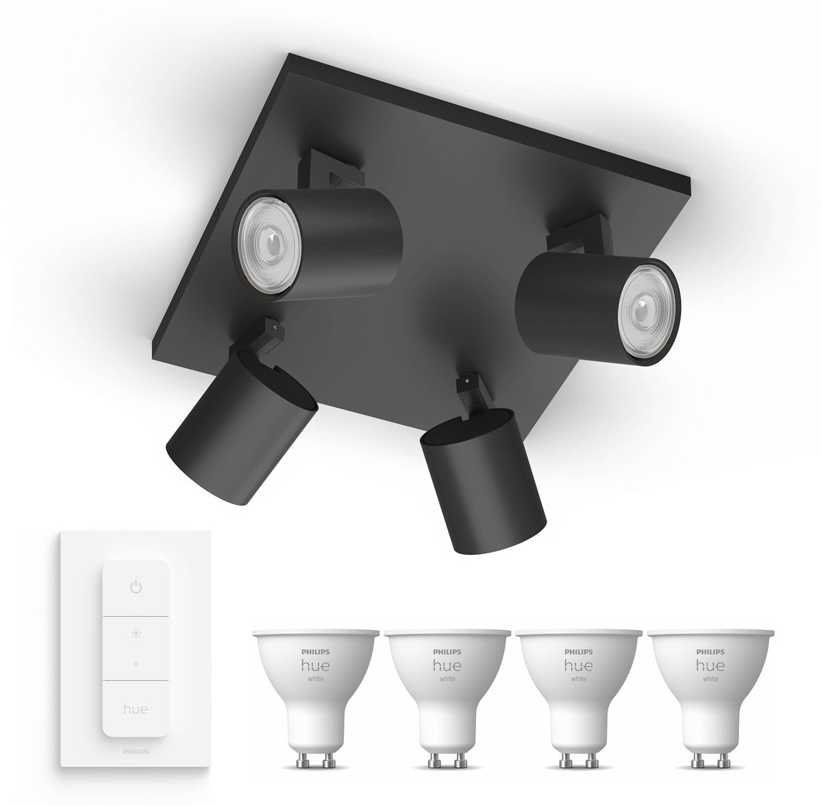 Specificaties: Philips myLiving Runner Opbouwspot met Hue White GU10 & Dimmer – Spotjes Opbouw – Bluetooth – 4 Lichtpunten – Zwart