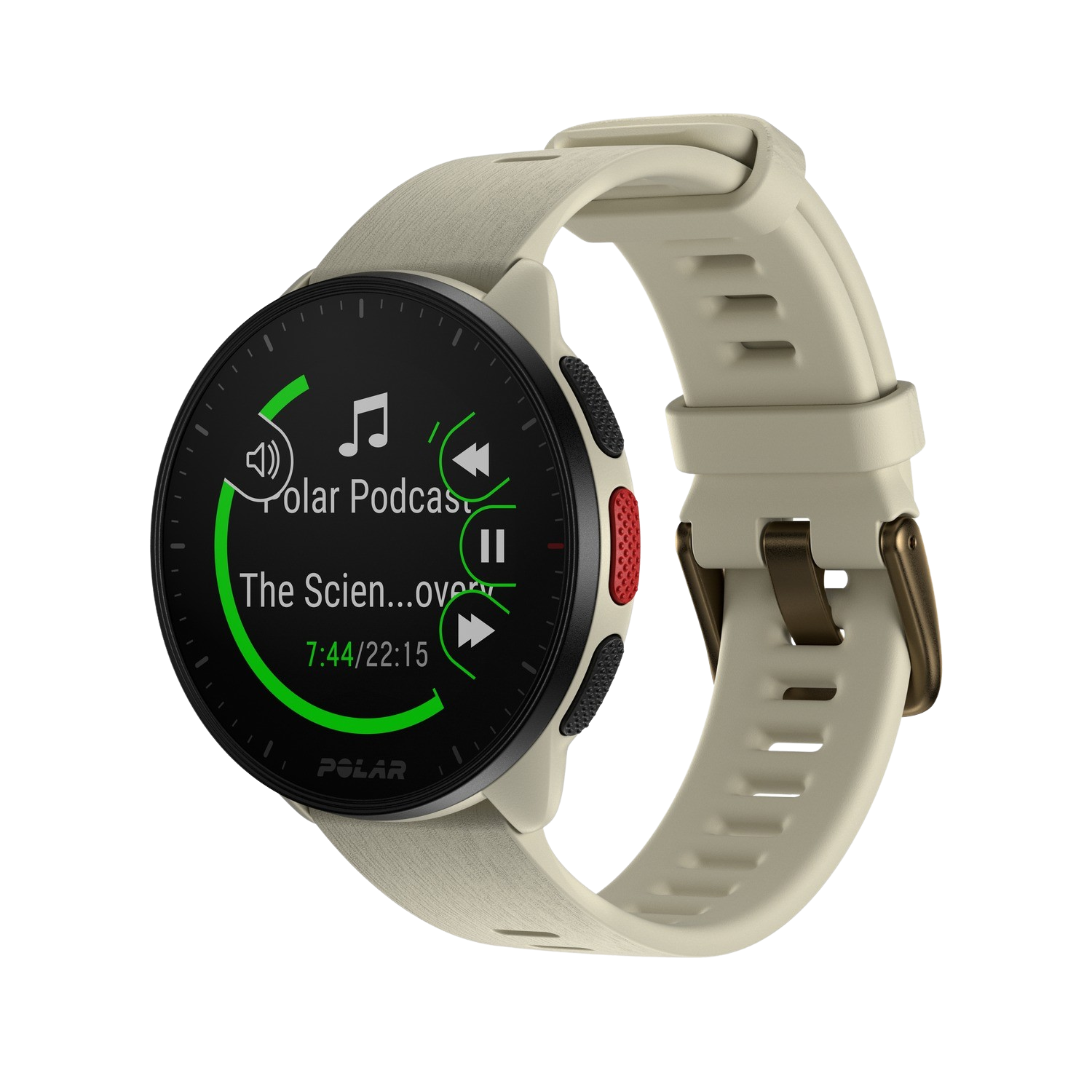 De Polar Pacer is het sporthorloge voor hardlopers die de beste prestaties willen neerzetten. Dat begint bij het gebruiksvriendelijke design en de hardware. Het hardloophorloge is licht van gewicht door de dunne behuizing met aluminium rand, waar reliëf knoppen aan de zijkanten zitten. Op de bovenkant zit een krasbestendig, reflecterend memory-in-pixel-kleurendisplay van 1.2 inch met touchscreen waarop je jouw muziek bedient en smartphonemeldingen bekijkt. Daarnaast beschikt de Pacer over een verbeterde processor en groter intern geheugen in vergelijking met Vantage M2. De batterij gaat met volledige Gps- en HR-tracking tot 35 uur mee en in de energiezuinige modus tot wel 100 uur. Genoeg tijd om de diverse hardloopfuncties van dit hardloophorloge met GPS uit te proberen en trainingsdoelen vast te stellen (Running Program). De hartslagsensor met Polar Precision Prime OHR-technologie houdt jouw hartslag tijdens het rennen in de gaten. Als laatste is de Pacer ook een sporthorloge dat aandacht besteedt aan jouw rustmoment. Wanneer je slaapt wordt jouw gezondheid gemonitord dankzij Nightly Recharge, een functie die nachtelijk herstel in kaart brengt. Met Sleep Plus Stages krijg je een duidelijk overzicht van jouw nachtrust.