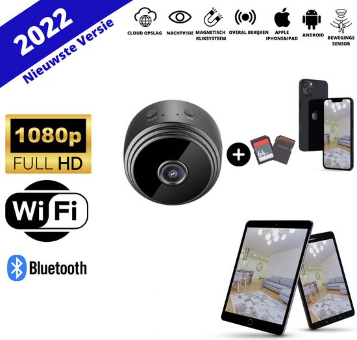 Een spycam (mini camera) waarvan je de live beelden kunt bekijken via een smartphone of tablet in de app. Of beelden via een sd kaart achteraf kan bekijken. Dan is ons model Spycam ideaal voor u. Onze Nieuwste 2022 VERSIE SPYCAM.