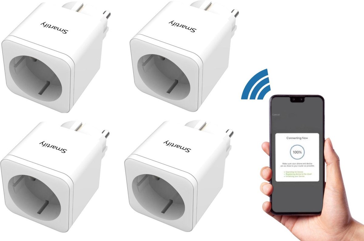 SMARTIFY® Smart Plug – 4 Stuks – Slimme Stekker – Google Home (Google Assistant) – TIJDSCHAKELAAR & ENERGIEMETER Via Mobiele Applicatie – Amazon Alexa & IFTTT Compatible- Smart Home