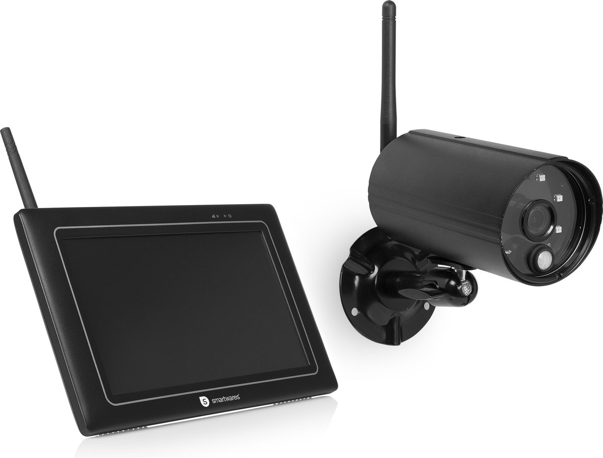 Bewaak je huis met de Smartwares CS97DVR Draadloos Camerasysteem. De set bestaat uit een 7″ monitor met touch screen en een 1080p full HD camera. Hang de camera buiten op en bekijk binnen de beelden van de camera op de monitor of op je smartphone of tablet met de gratis WDVR Cam app.