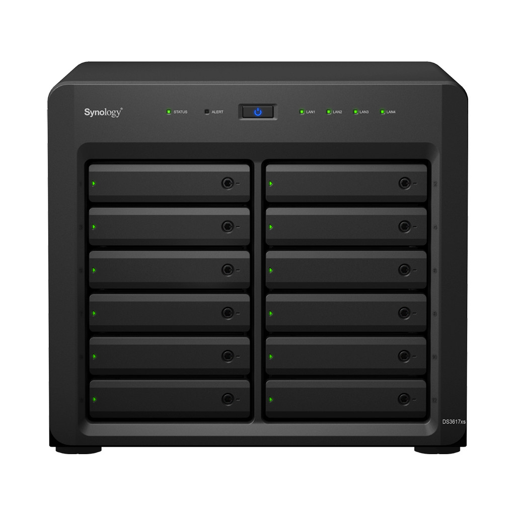 De Synology DS3617xsII is een NAS voor middelgrote tot grote ondernemingen. Met ruimte voor 12 harde schijven centraliseer je de gegevensbeveiliging van jouw bedrijf en vereenvoudig je het beheer. De NAS is uitgerust met een quad-core processor en 16 gigabyte werkgeheugen. Hierdoor multitask je probleemloos en verschaf je toegang aan tientallen werknemers tegelijkertijd. Wanneer je virtuele omgevingen draait via VMware, Hyper-V of OpenStack, krijgen gebruikers geen last van uitvaltijden of onderbrekingen. Je krijgt 2 camera licenties meegeleverd die uitbreidbaar zijn tot 75 camera’s. Ook stel je automatische snapshots in om je bewakingsbeelden of werkbestanden veilig te stellen. De DS3617xsII beschikt over bandbreedte controle voor specifieke groepen en ondersteunt back-ups naar de openbare cloud. Daarnaast synchroniseer je gedeelde mappen en fysieke netwerkinterfaces eenvoudig met Synology hulpprogramma’s. De passieve koeling in de ventilatoren voorkomt storingen. Met 2 apart verkrijgbare Synology DX1215 expansie eenheden breid je de maximale capaciteit uit tot maar liefst 36 SATA schijven.