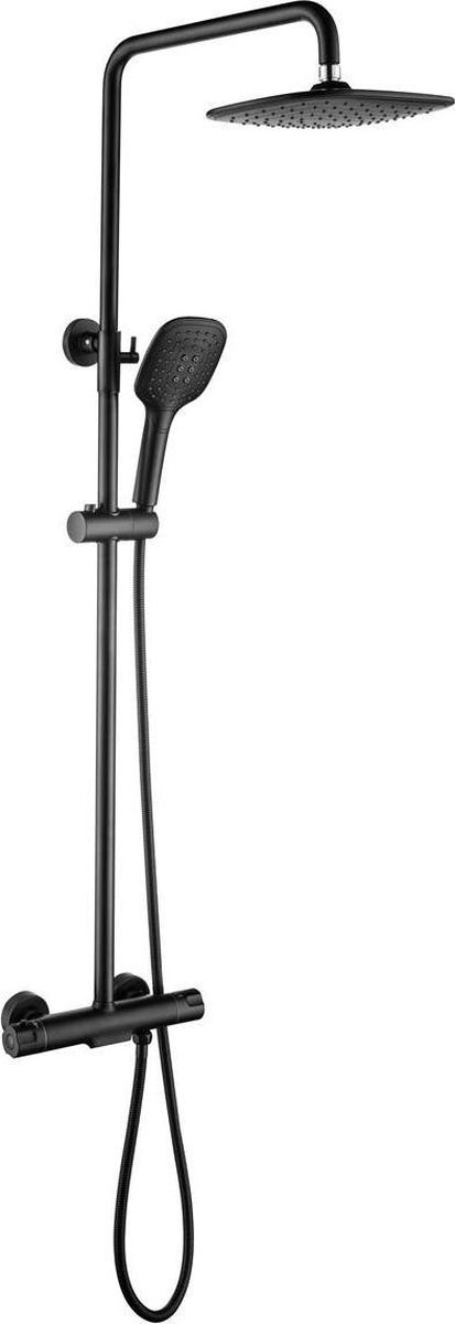 Regendouche opbouw met thermostaatkraan, handdouche en kraan uitloop, h.o.h. afstand 150mm
