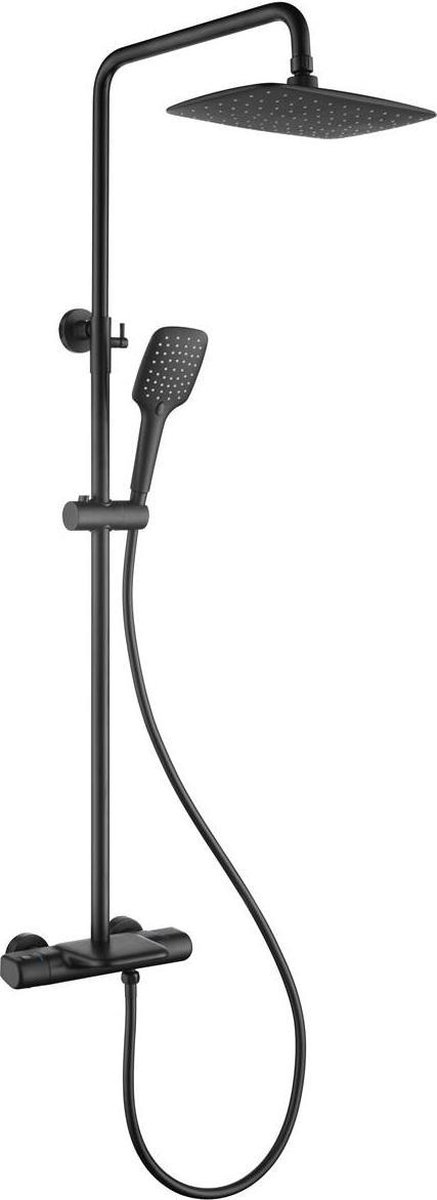 Regendouche opbouw met thermostaatkraan, handdouche en kraan uitloop, h.o.h. afstand 150mm