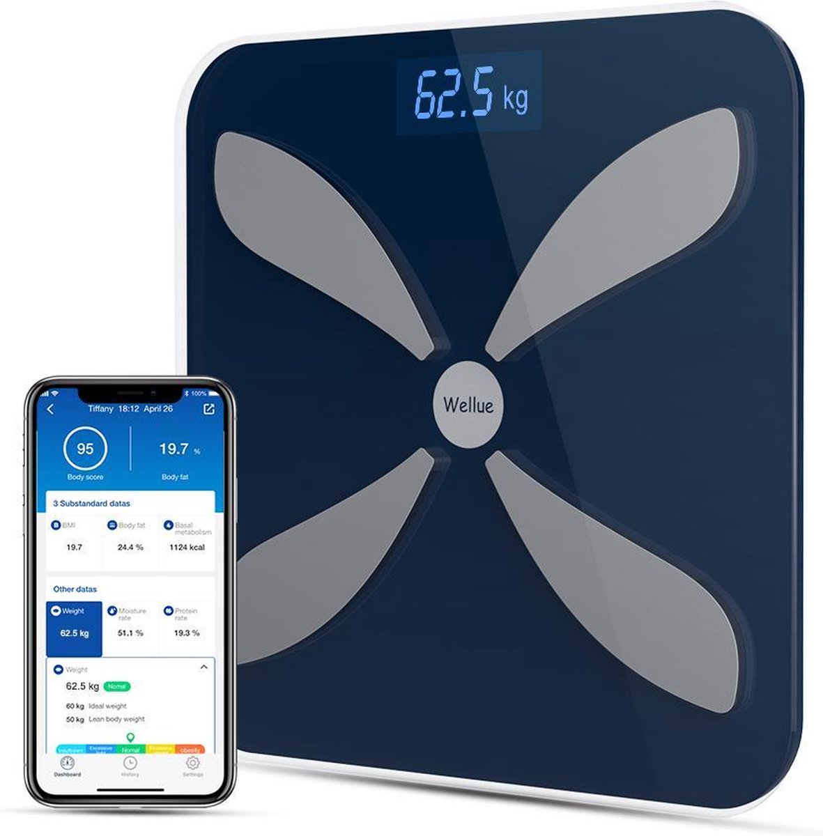 Wellue – Personenweegschaal Met Lichaamsanalyse En Gratis App Incl. Batterijen – Digitale Smart Weegschaal Voor meerdere Gebruikers